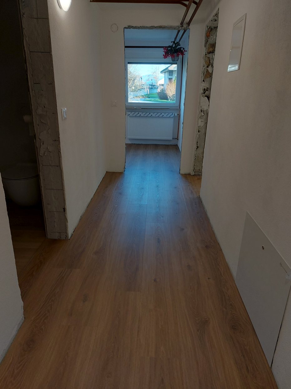 Obrus površine, dobava in montaža vinila/ izravnalne mase, Al-profil med keramiko in vinilom